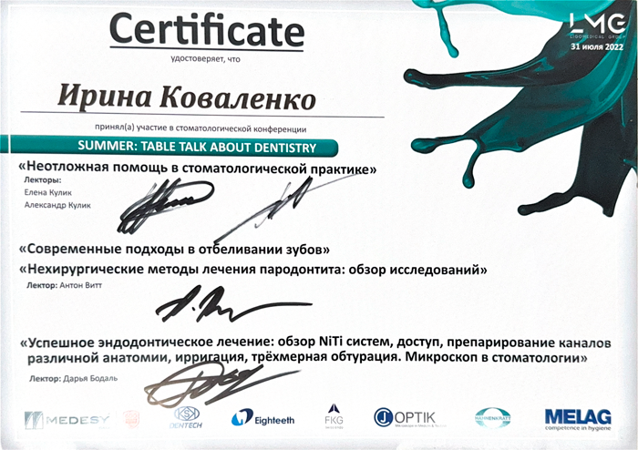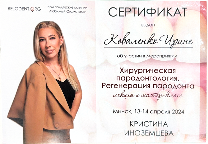 • Специализация- лечение заболеваний периодонтит, лечение кариеса, эстетические реставрации зубов