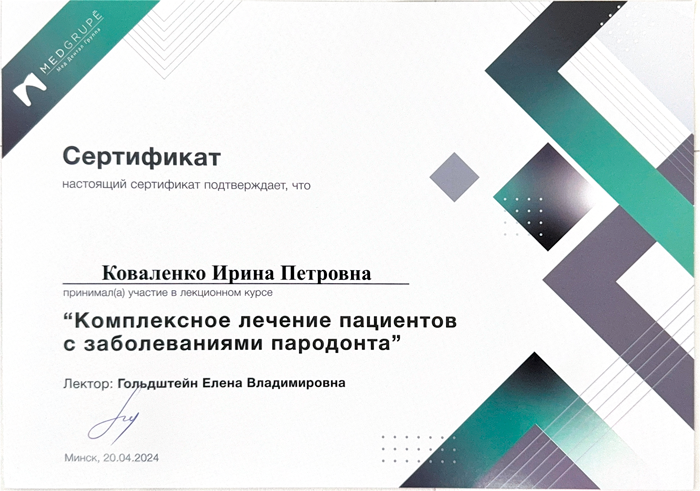 • составление комплексного плана лечения пациентов с заболеваниями периодонта (с последующим необходимым хирургическим, ортопедическим, ортодонтическим лечением)